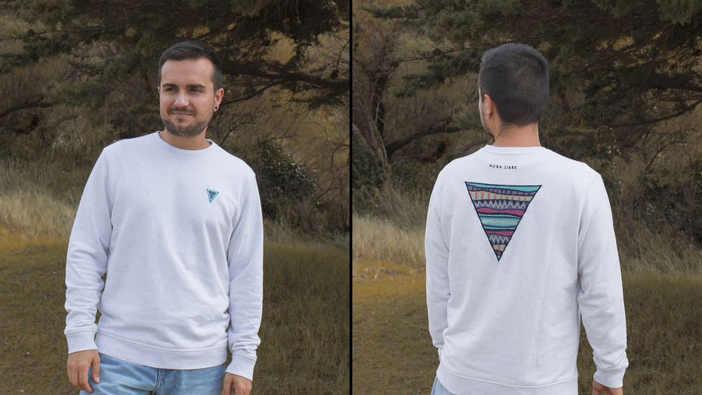 Sudadera con 85% algodón orgánico y 15% poliéster reciclado de botellas de plástico PET.